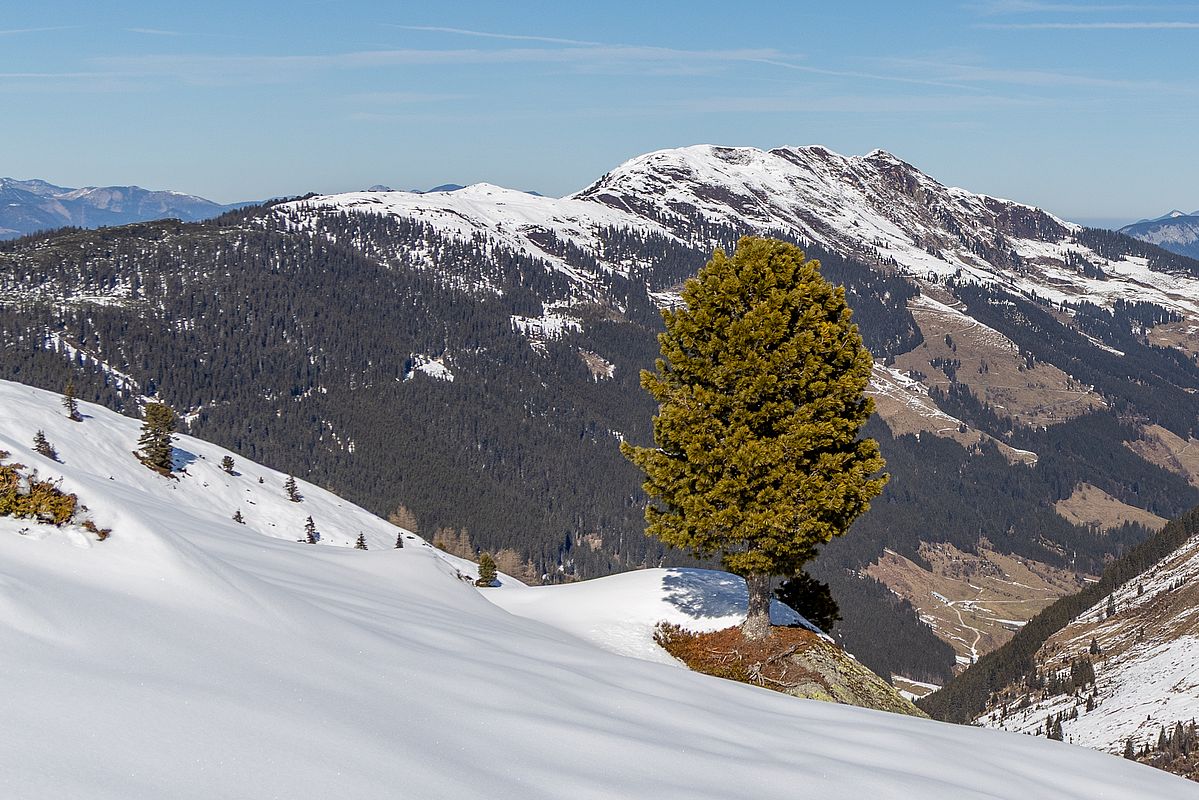 Aufstieg vom Parkplatz vor der Erlauerhütte in den Frommgrund mit insgesamt guten Verhältnissen, allerdings ein paar kurzen aperen Stellen und einigen lästigen Bachquerungen. Außerhalb des Waldes liegen auf den flacheren Hangpassagen noch 20–40 cm Altschneedecke mit 15 cm Pulverschneeauflage im Schatten. Ähnliches gilt für den Weiterweg über die (Nord-)Ostseite aufs Bärentalköpfl. Die Neuschneeauflage im oberen Teil beträgt dort dann eher 20 cm. Dort, wo die Sonne anstand, wurde der Schnee schon vor Mittag pappig, ansonsten blieb es bei Pulverschnee. Die Abfahrt nord- und nordwestseitig zur Forststraße hatte noch guten Pulverschnee, ostseitig hatte der Neuschnee leider schon einen Stich. Mit etwas Blick fürs Gelände ist Steinkontakt eher unwahrscheinlich. Unterhalb – in den westseitigen Schneisen zur Erlauerhütte – sind die engeren bzw. bewachsenen Abschnitte aufgrund der geringen Gesamtschneehöhe momentan ein rechter Murks. Routinierte Waldskifahrer kommen aber einigermaßen durch. Ansonsten fährt man besser über die flache Straße ab oder nach Osten in den Frommgrund (Abfahrt durch den Talgrund geht gut bis zum Parkplatz mit ein paar kurzen Abschnall-Stellen).