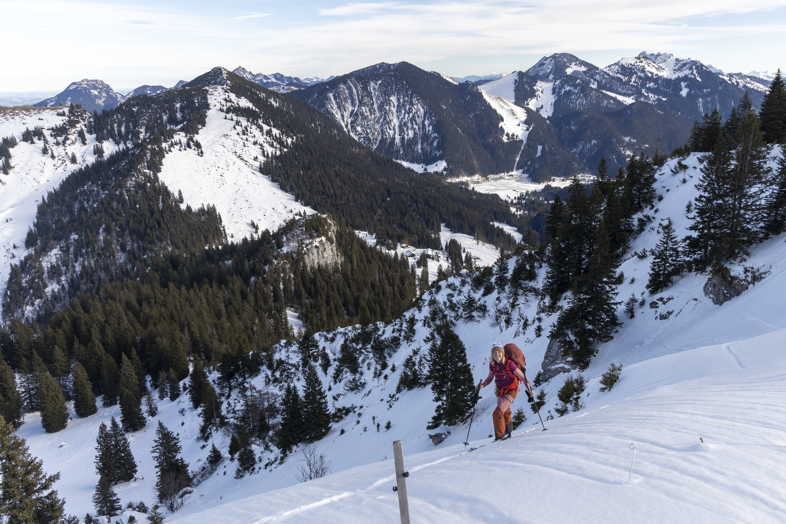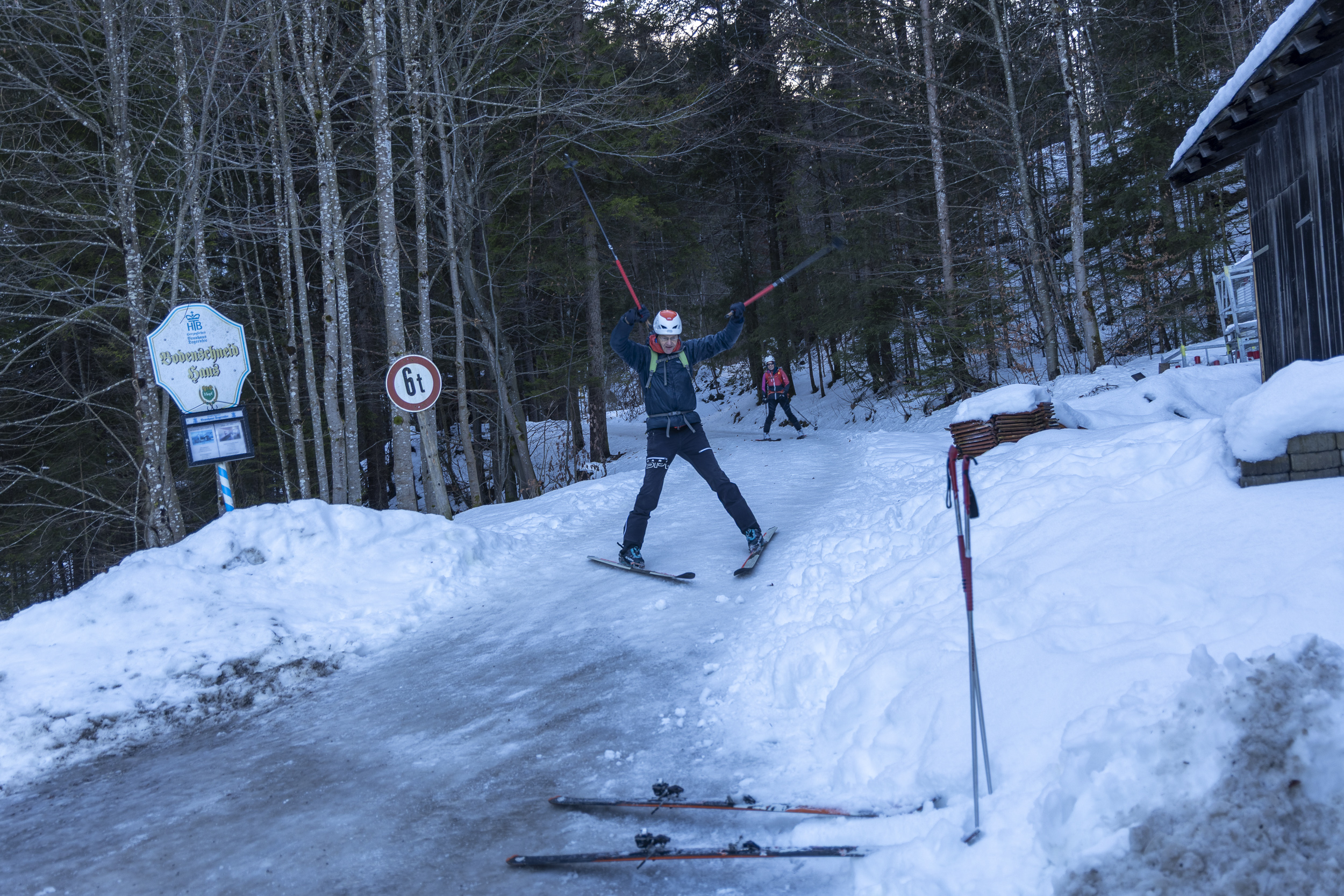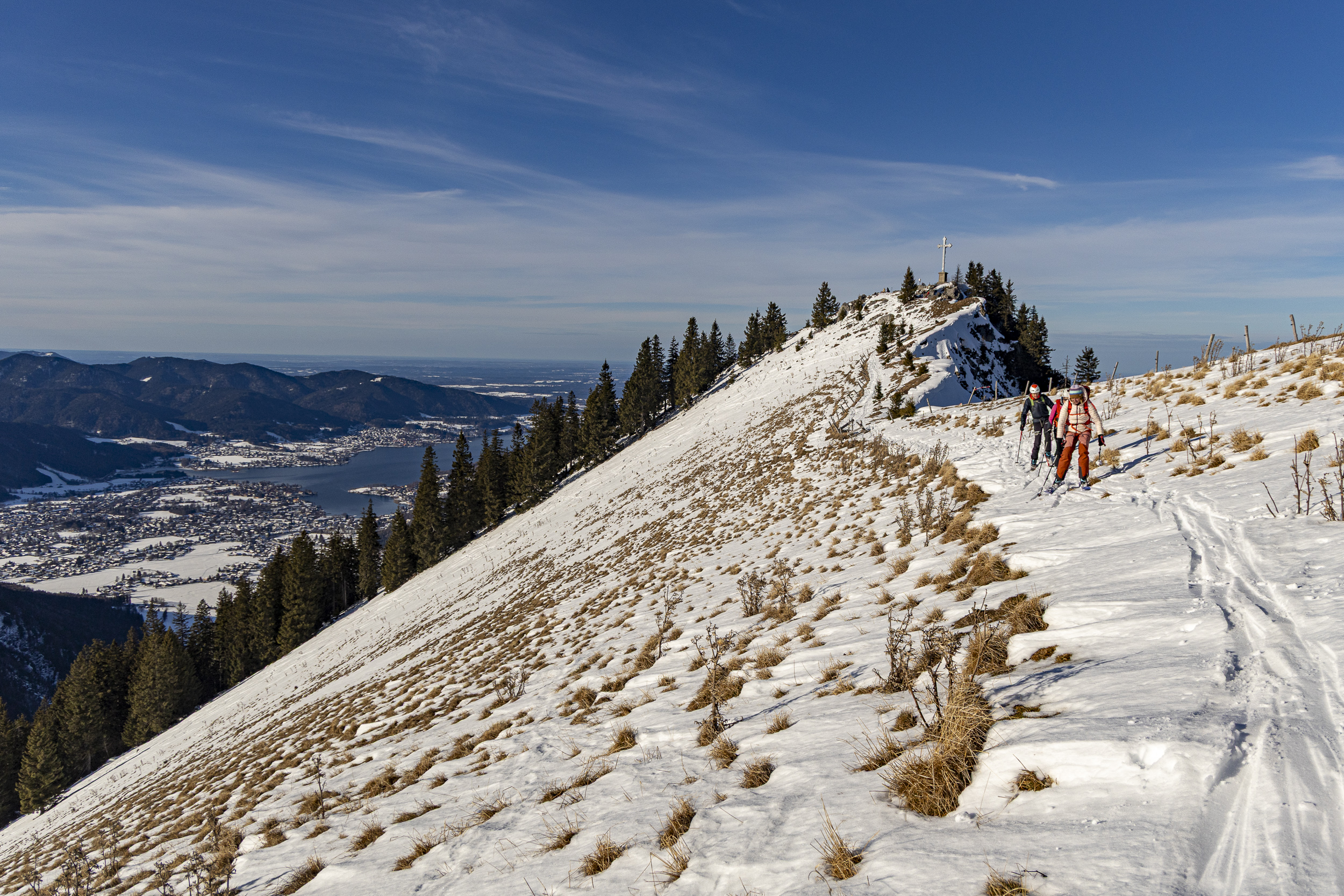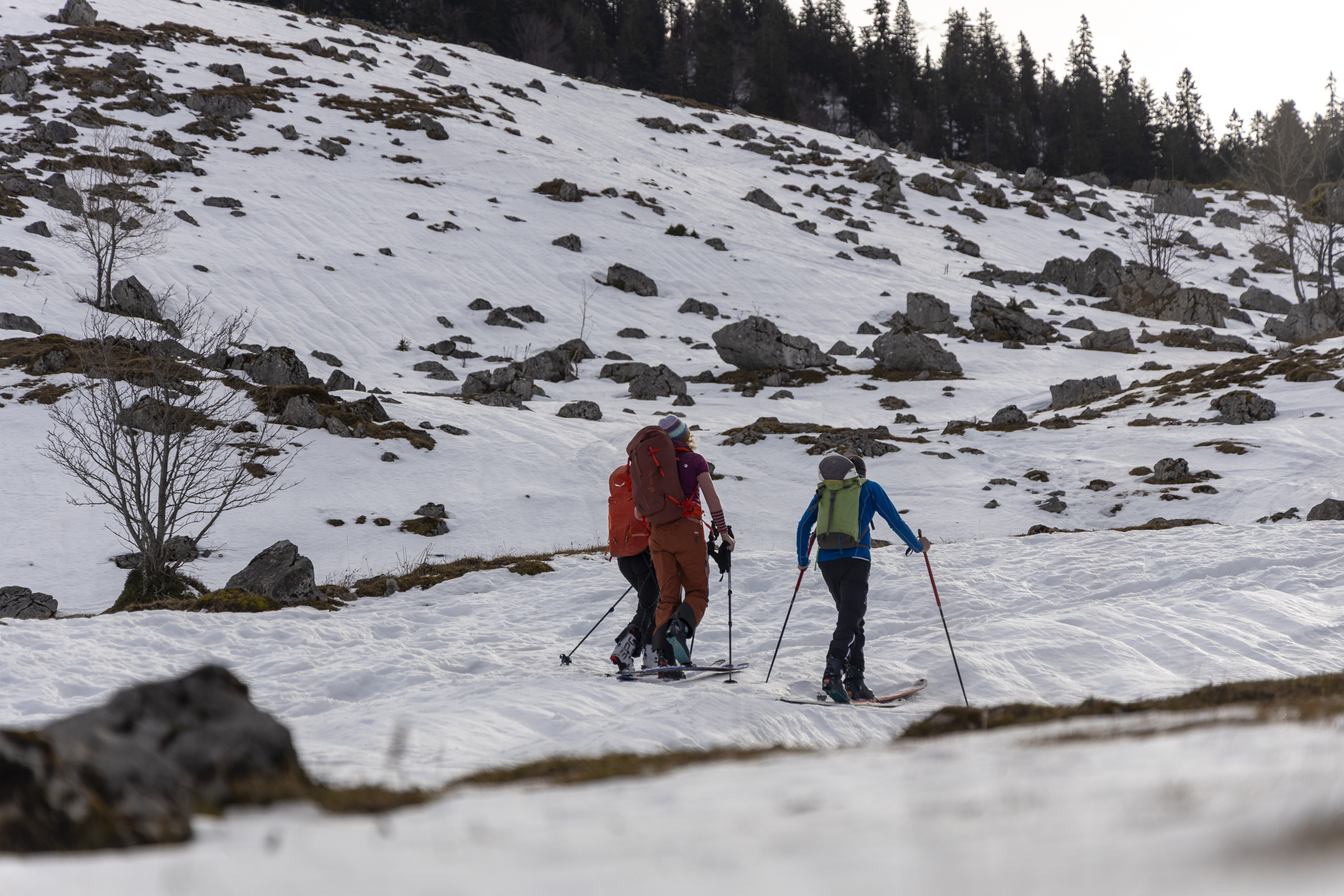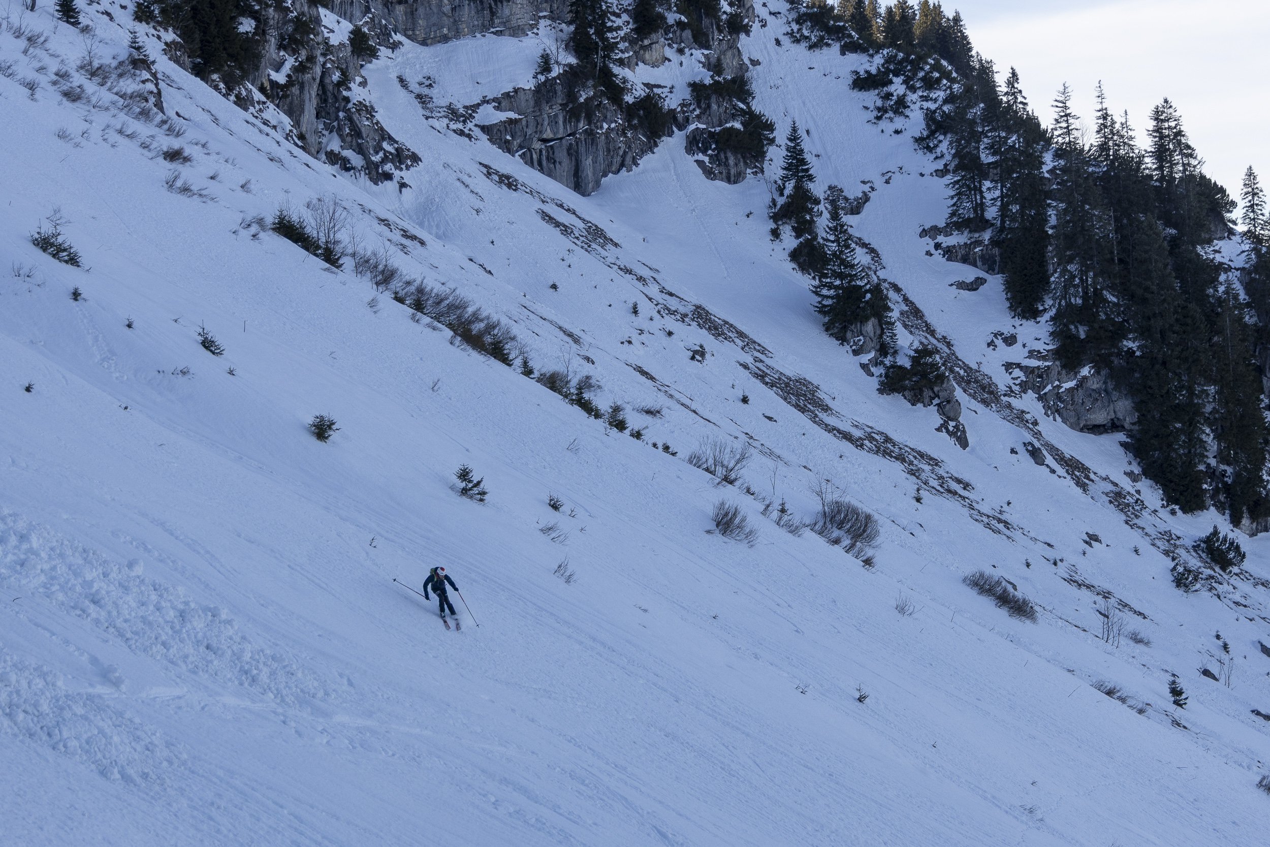 Wir sind heute von Neuhaus mit Ski auf die Bodenschneid. Am Eingang des Dürnbachgrabens liegen etwa 20–30 cm nasser bis gefrorener Altschnee, auf der Rodelbahn in Richtung Bodenschneidhaus hat es durchgehend eine geschlossene Schneedecke. Über die Forststraße kommt man problemlos zur Freudenreichalm. Aufstieg durch das große Bital unten im Graben Bruchharsch, oben in der freien Nordflanke hats dann überwiegend getragen. Weiter ging es links zum Ausstieg des Kleinen Bital auf den Grat in zuletzt ordentlichem Bruchharsch. Am Grat auf der Südwestseite dann Nassschnee und daneben recht abgeblasen. Abfahrt erwartungsgemäß kein Knaller – ein paar gute Schwünge auf dem tragenden Harsch im Großen Bital und das lange Forststraßenstück gingen gut, über den Rest mit einer Mischung aus Bruchharsch und Nassschnee breiten wir besser den Mantel des Schweigens. Immerhin kein Steinkontakt und super Wetter mit guter Aussicht - dazu nette Gesellschaft.