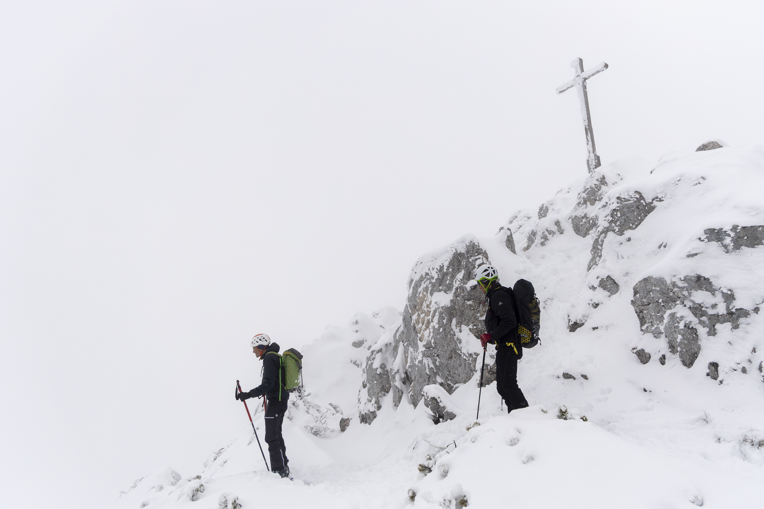 Es ist Anfang April und wir haben endlich mal wieder Schneeverhältnisse wie früher, als man im Winter in den Bayerischen Voralpen südseitig Pulverschnee mit Unterlage finden konnte. Solch seltene Gelegenheiten wollen genutzt sein und wir sind seit einer gefühlten Ewigkeit mal wieder auf die Lacherspitze (Skitourenführer Bayerische Alpen, Tour C7).