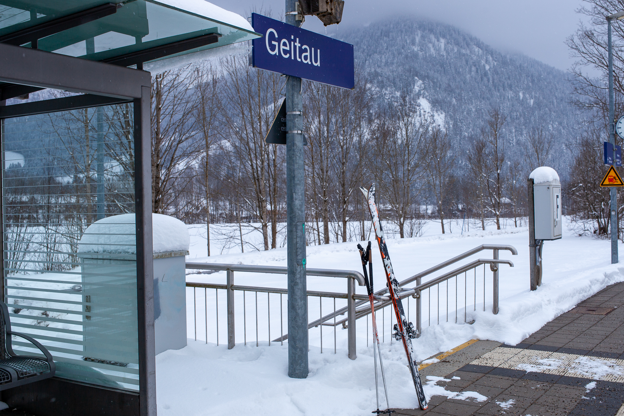 Die selten guten Pulverschneeverhältnisse bis ins Tal mussten heute genutzt werden, weshalb ich mal wieder eine Tages-Skidurchquerung gemacht hab. Nach der Anreise in leeren Zügen und Bussen bis zur Talstation der Wallbergbahn am Tegernsee ging es gegen halb 9 los.
