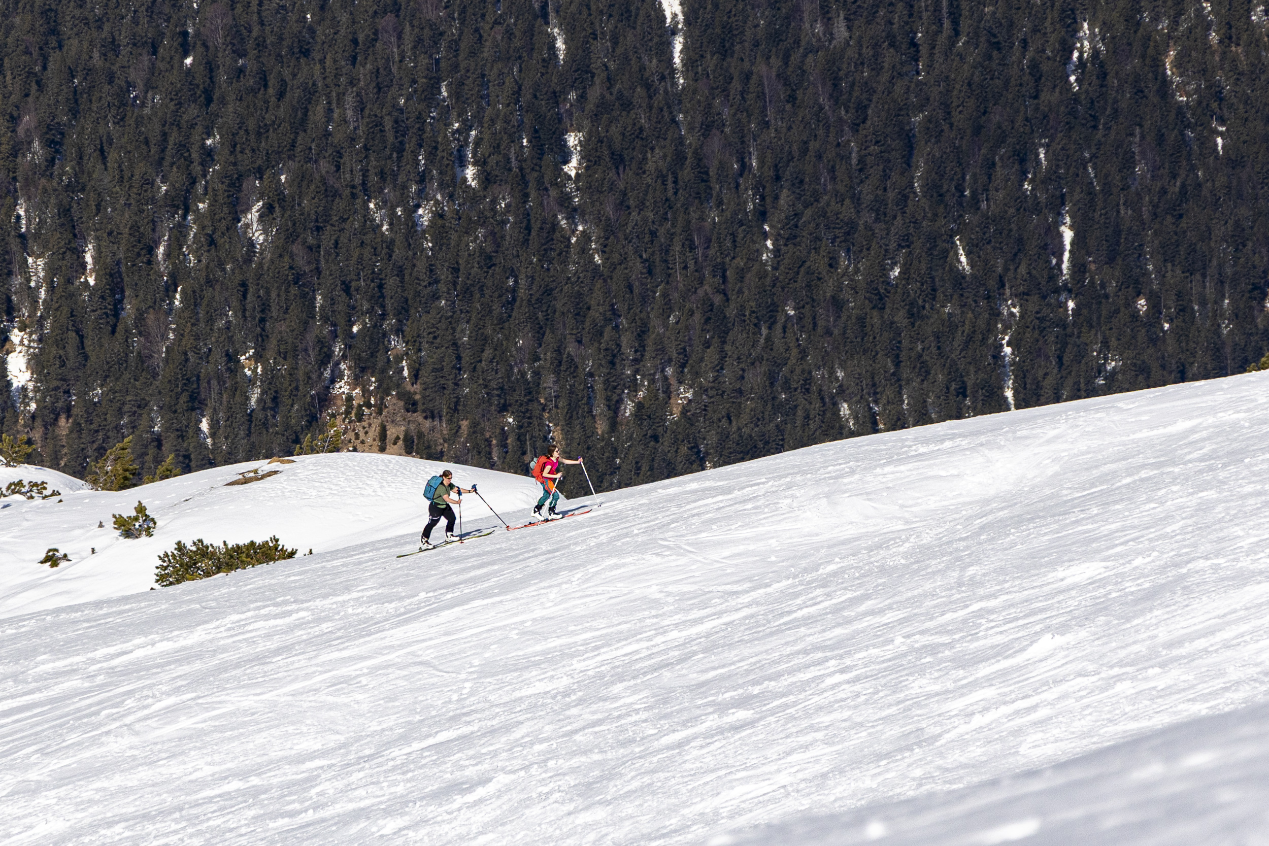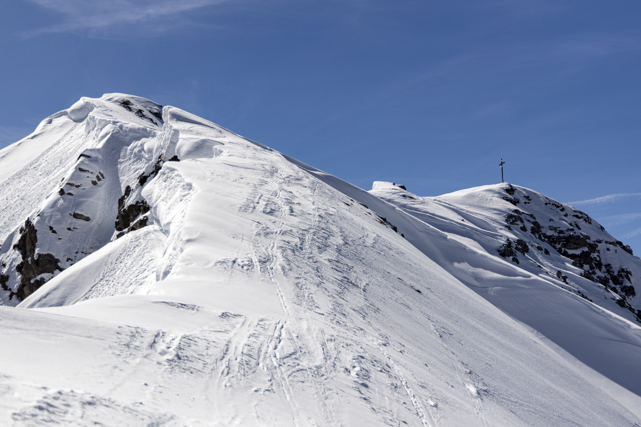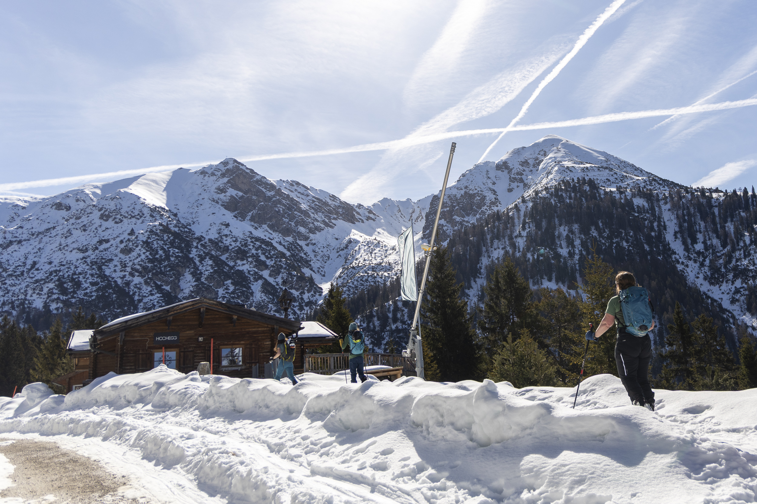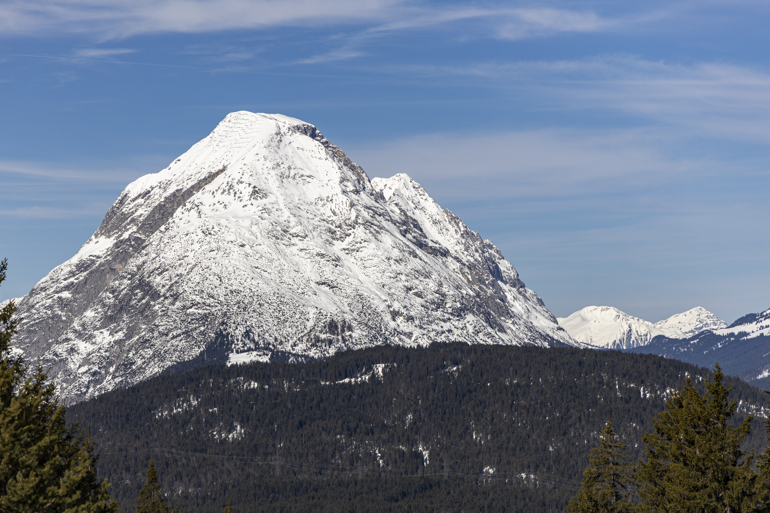 Bei unserem Familienurlaub in Leutasch ging es heute von Seefeld mit der ganzen Truppe über die Rosshütte auf das Seefelderjoch. Auf dem letzten Gratstück zur Seefelderspitze wollte mich dann niemand mehr begleiten, so dass ich noch schnell alleine rüber bin. Die Bedingungen am Grat waren heute einwandfrei und problemlos ohne Harscheisen machbar, das könnte sich in den nächsten Tagen jedoch ändern, da es heute sehr warm war und am Nachmittag auch die Westseiten am Gipfelgrat durchfeuchtet wurden. Nach der nächsten klaren Nacht könnte es ziemlich hart werden. Auf den Pisten liegt noch genug Schnee, so dass sie durchgehend mit Ski fahrbar sind. Vormittag im Aufstieg war die Schneedecke hart gefroren, nachmittags war der Schnee sulzig und hat in der Abfahrt ziemlich gebremst, vor allem ab der Rosshütte talwärts. Die Tour ist aber sicher noch eine Zeit lohnend.