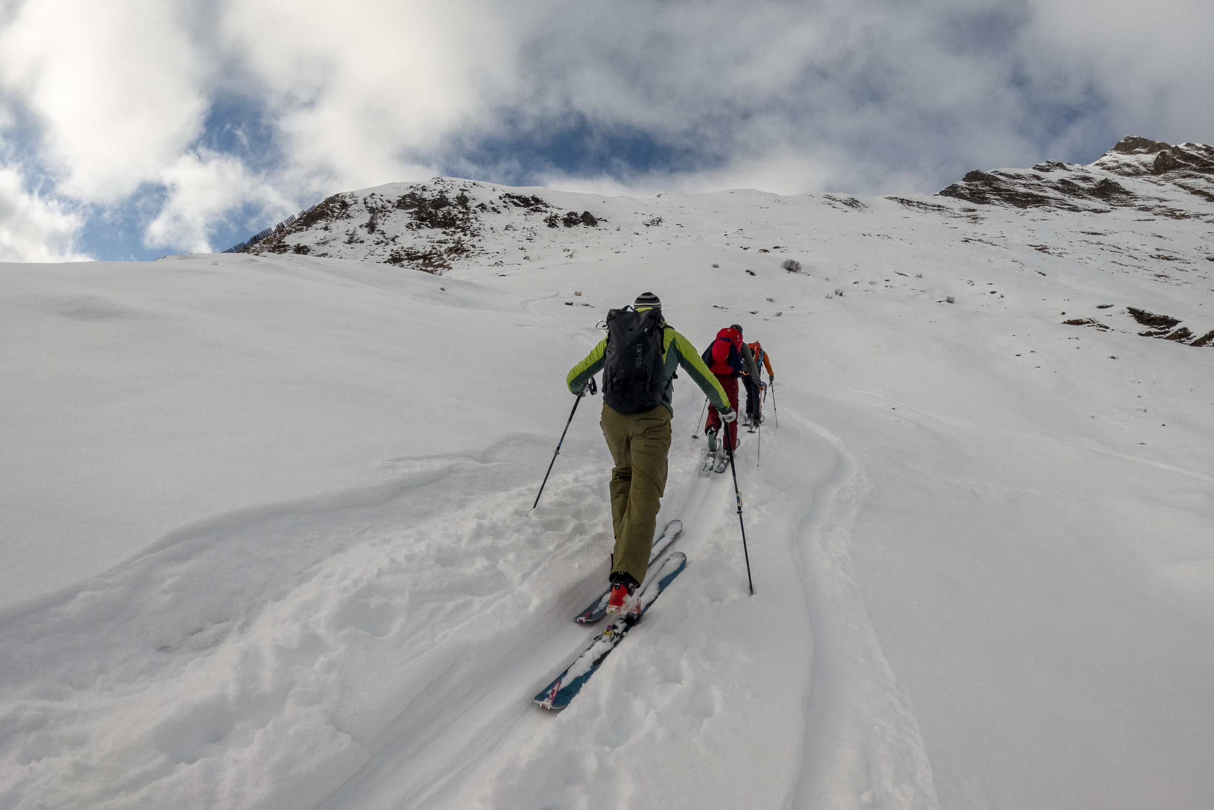 Tour E14a: Könnte schneetechnisch möglich sein - evtl. etwas ruppig an der ersten Stufe und im oberen Teil könnte der Schnee die Steine ausreichend verdecken. Allerdings dort laut Skitourenguru lawinenmäßig grenzwertig: muss vor Ort kritisch beurteilt werden!