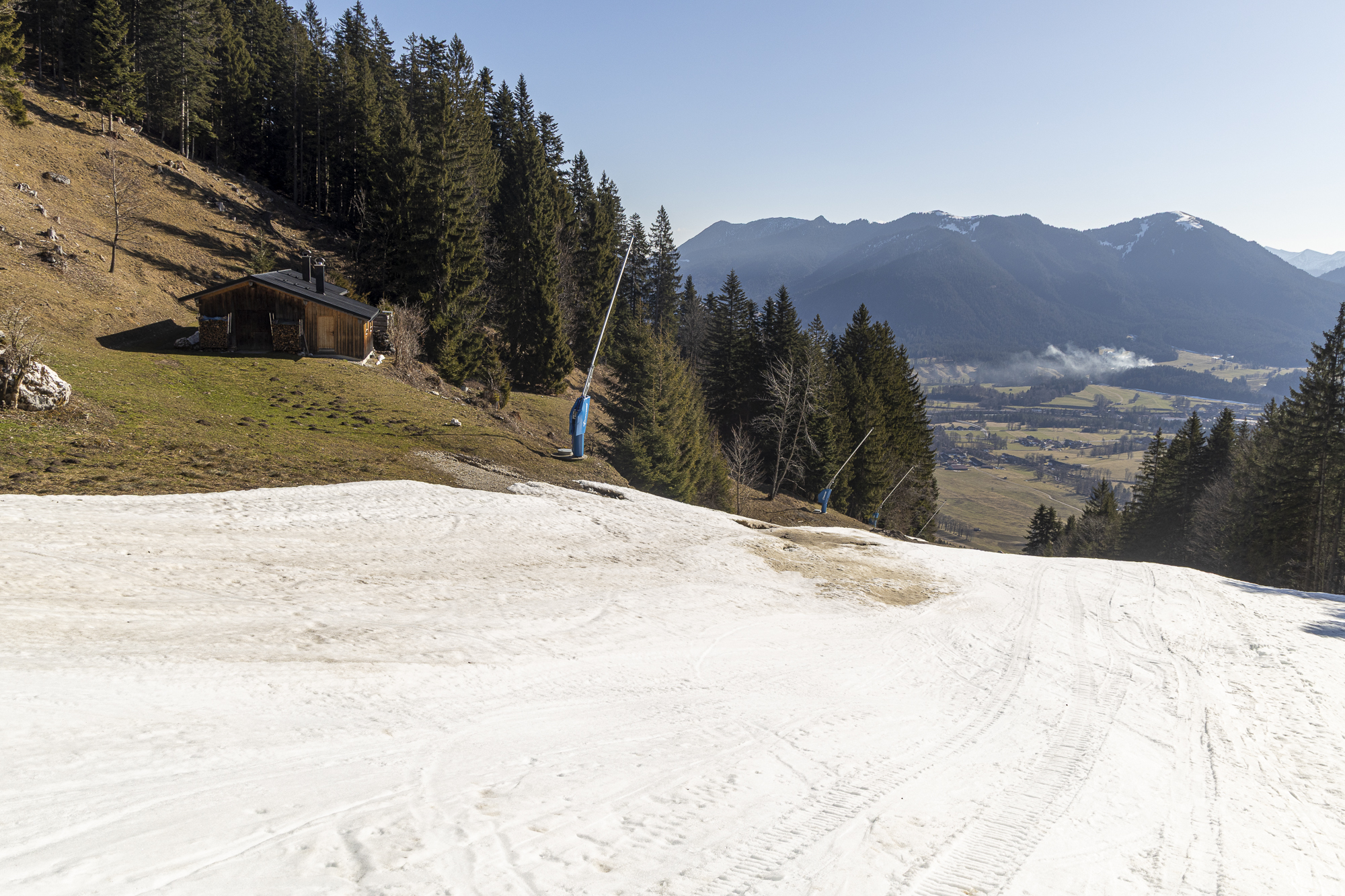 Ich war heute im Brauneck-Gebiet unterwegs. Für den Aufstieg von Wegscheid und für die Talabfahrt hab ich jeweils die gesperrte Waxensteinabfahrt genommen. Die war heute noch durchgehend befahrbar und aufgrund der Sperrung war sie weitgehend menschenleer - außerdem am Nachmittag nicht so zerackert wie die Familienabfahrt. Der “Skitourenaufstieg” über die Florihütte hat auf längeren Strecken keinen Schnee mehr.