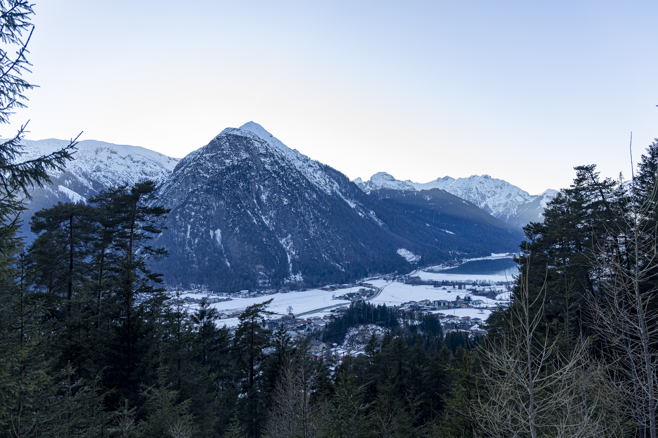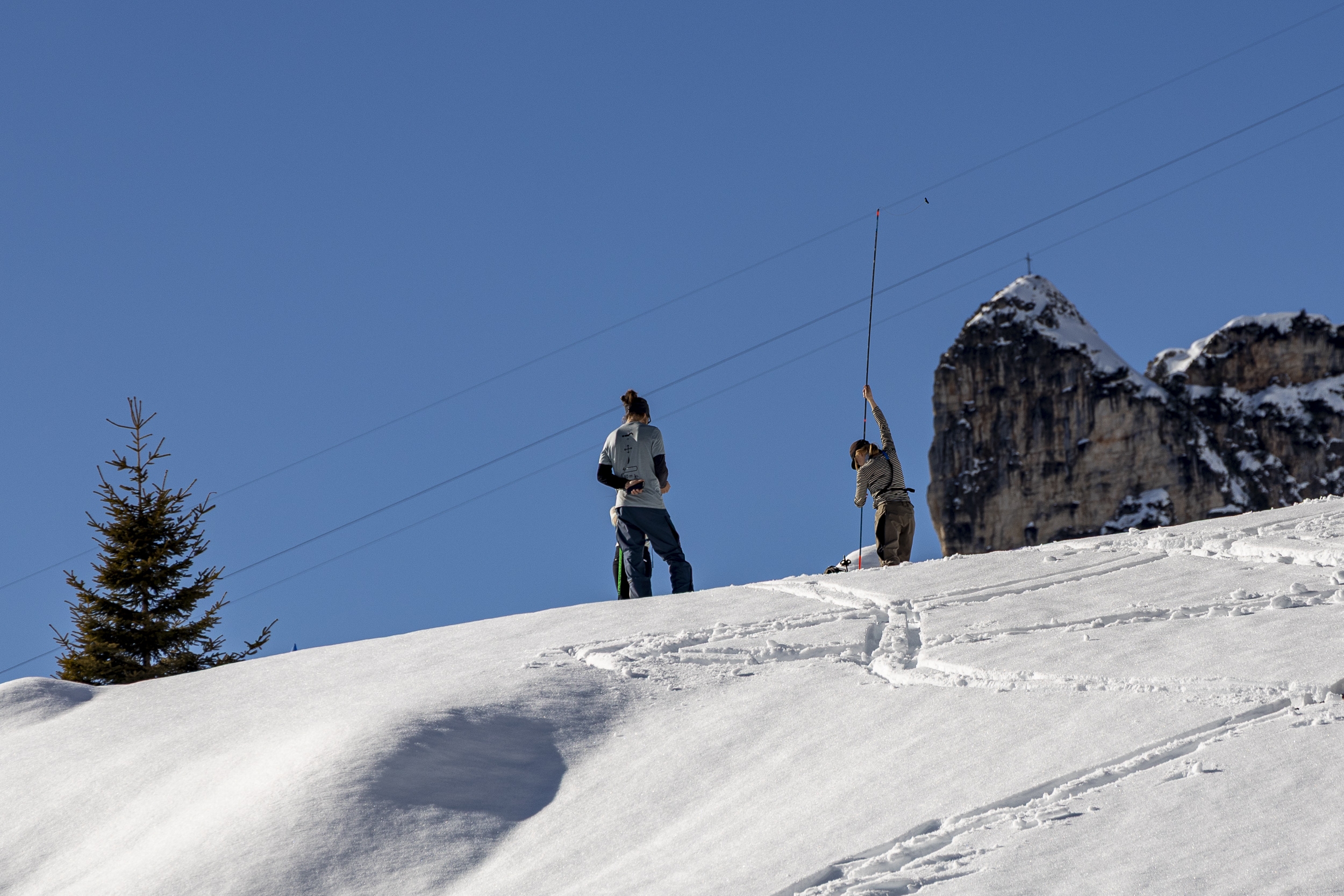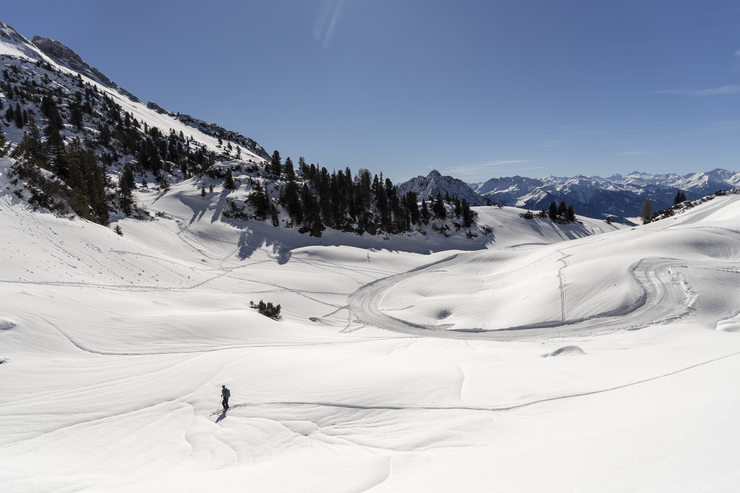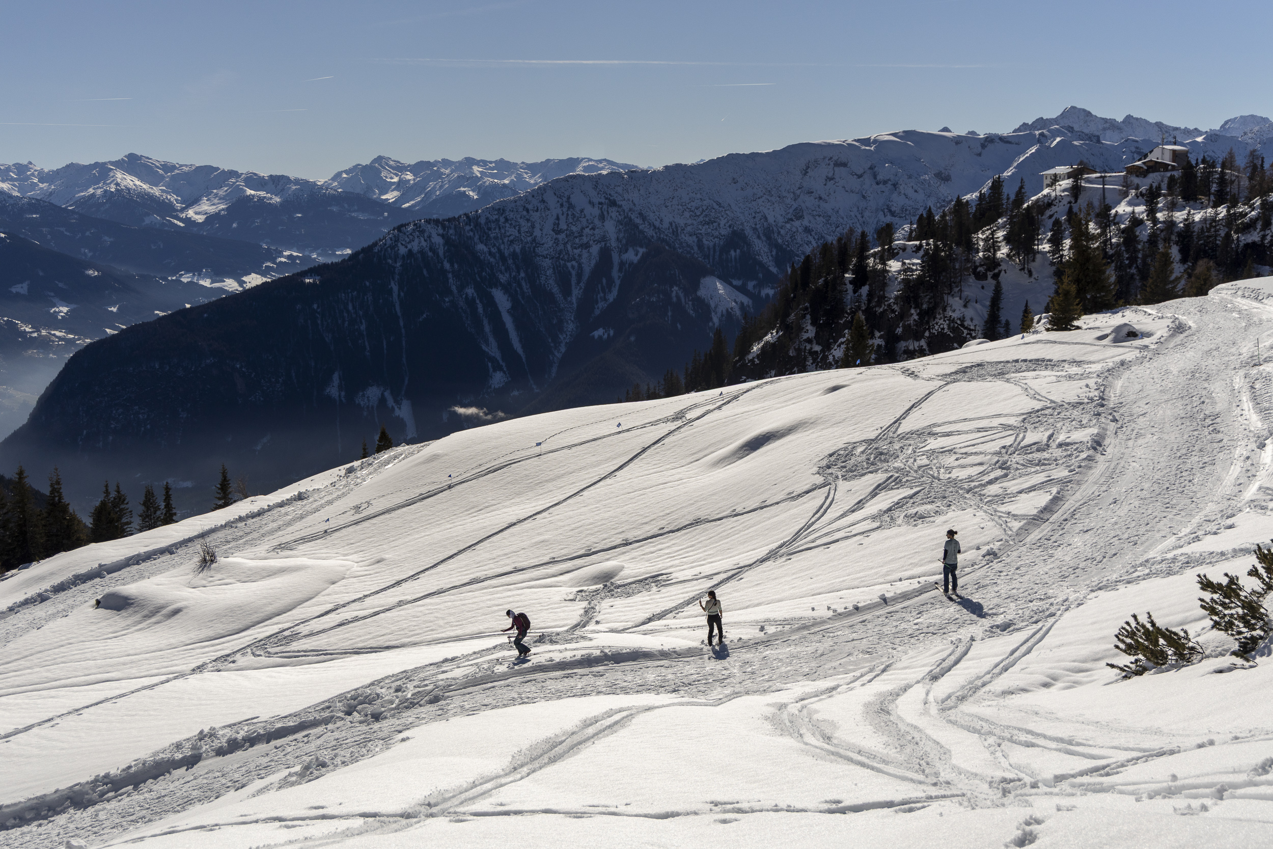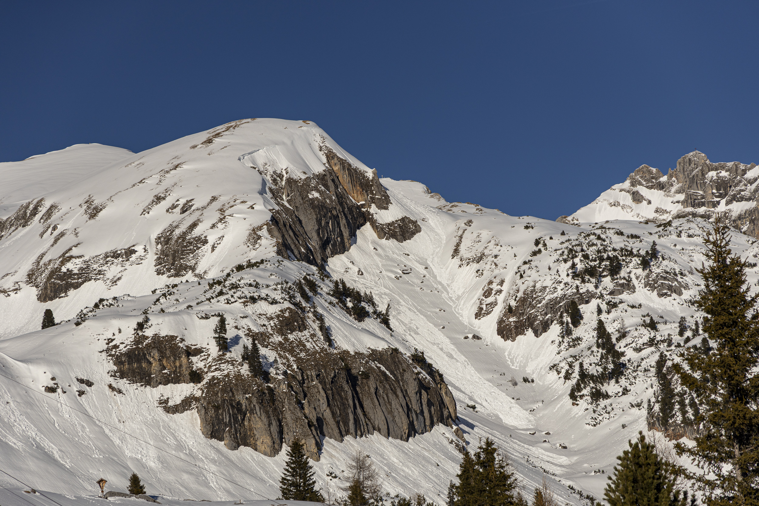 Heute war ich bei traumhaftem Wetter im Rahmen einer Produktpräsentation von Ortovox im Rofangebirge in der Nähe der Erfurter Hütte unterwegs. Gestern hat es auf Höhe der Hütte (ca. 1800 m) und oberhalb etwa 30 cm geschneit. Etwa 100-300 m unterhalb der Hütte ist der Schneefall in Regen übergegangen.