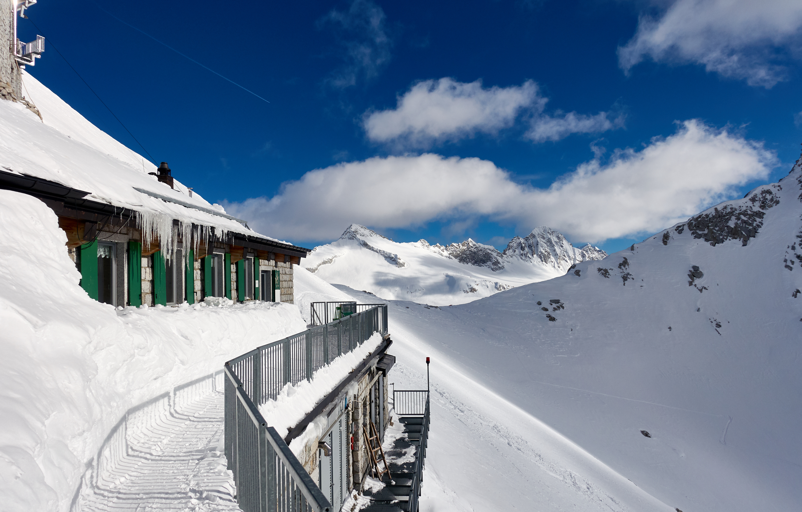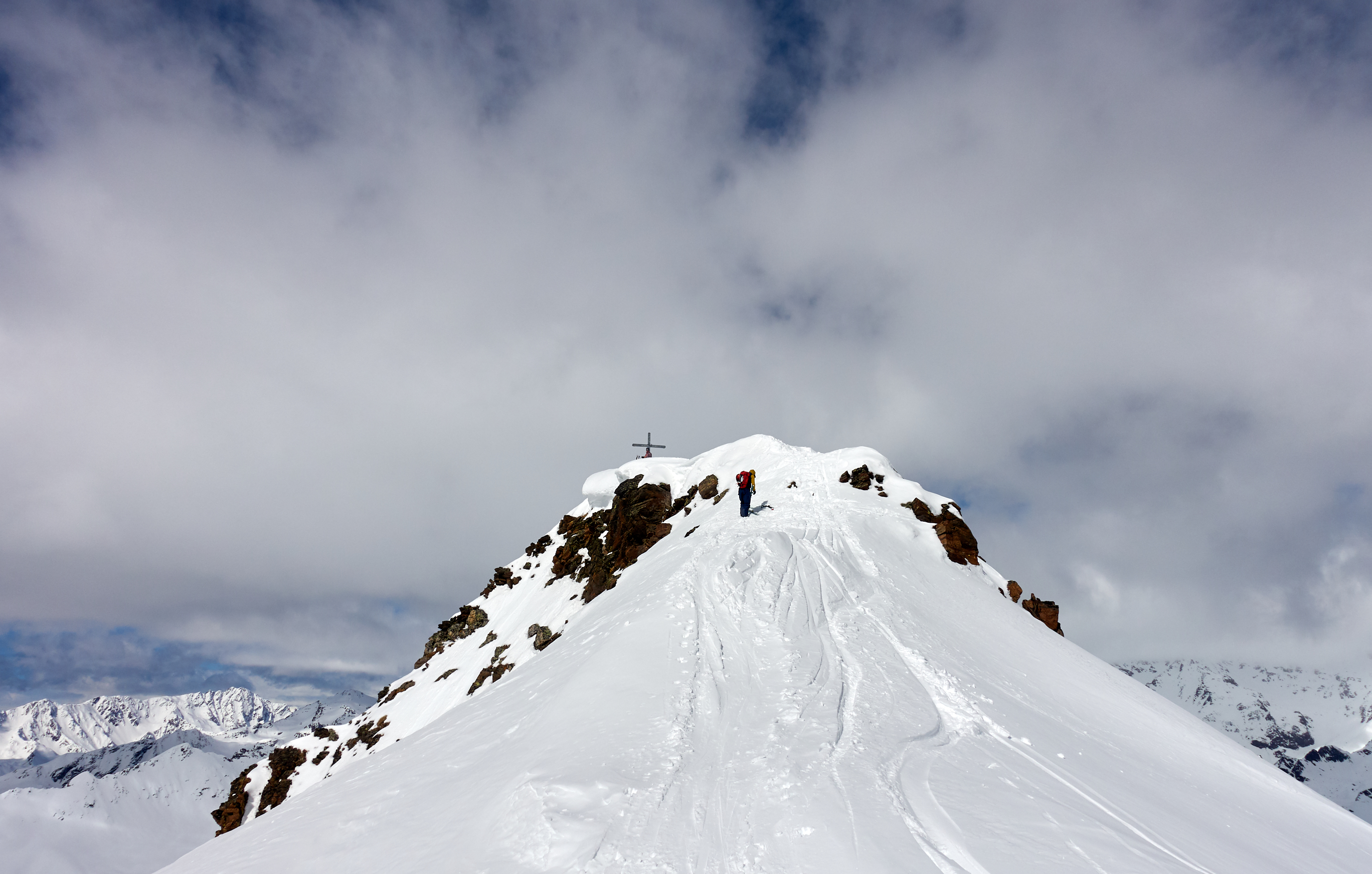 Am Passo Tonale liegen zur Zeit etwa 1,5-2m Altschnee, die ergiebigen Niederschläge der Südstaulagen der letzten Tage und Wochen sind nicht zu übersehen. Am ersten Tag (13.3.) sind wir vom Passo Presena in knapp 3 Stunden zum Rifugio Ai Caduti dell’Adamello, wo es schon einen ersten Vorgeschmack auf die riesige Gletscherfläche des Adamellogletschers gab. Übernachtung dann auf der Hütte und weiter am nächsten Tag lang und flach über den Adamellogletscher zum Gipfelaufbau und auf den Gipfel. Dank der guten Schneelage war die Abfahrt vom Gipfel weg möglich. Auf dem Adamellogletscher war die Schneeoberfläche stark vom Windeinfluss geprägt, was aber keine Rolle spielt, da das Gelände hier so flach ist, dass man alles entweder Schuss fährt oder schieben muss. Auf ca. 2800m haben wir wieder angefellt und sind zum Passo della Valletta hinauf wo die gigantische Abfahrt nach Ponte di Legno beginnt. Hier hatten wir in dem windgeschützten Tal perfekten gesetzten Pulverschnee für die oberen ca. 1200 Hm. Weiter unten dann war’s dann eher Bruchharsch, hier war es dem Pulverschnee in den letzten Tagen schon zu warm geworden. Der Schnee hat allerdings freundlicherweise bis wenige Minuten vor Ponte di Legno gereicht. Generell sind momentan hier die Gletscher sehr gut eingeschneit; auf den weiten Hochflächen war überwiegend eine Windharschkruste vorhanden während in der windgeschützen nach Norden ausgerichteten Pisgana-Abfahrt bis ca. 2000 m hinab bester Pulverschnee zu finden war.