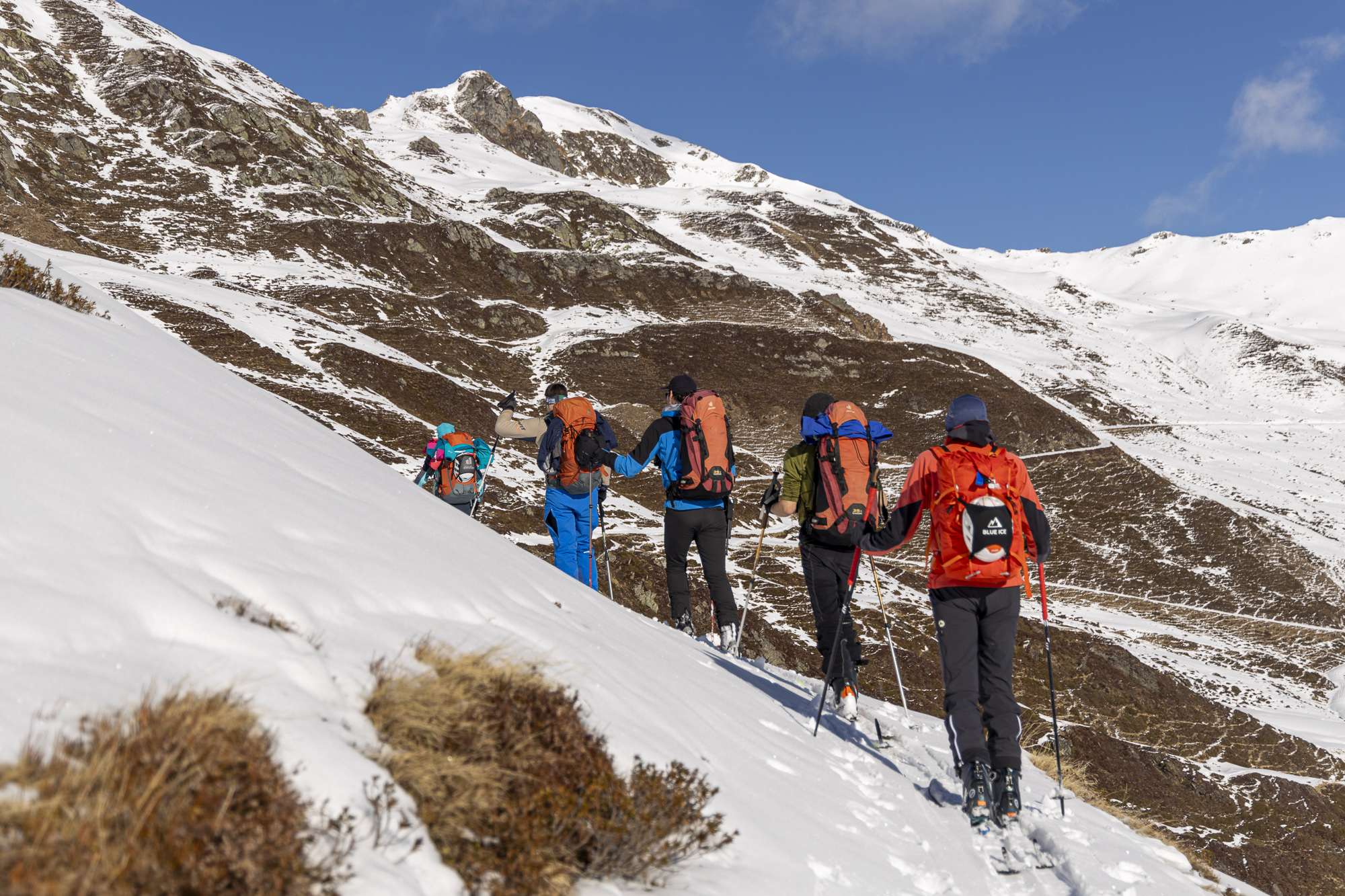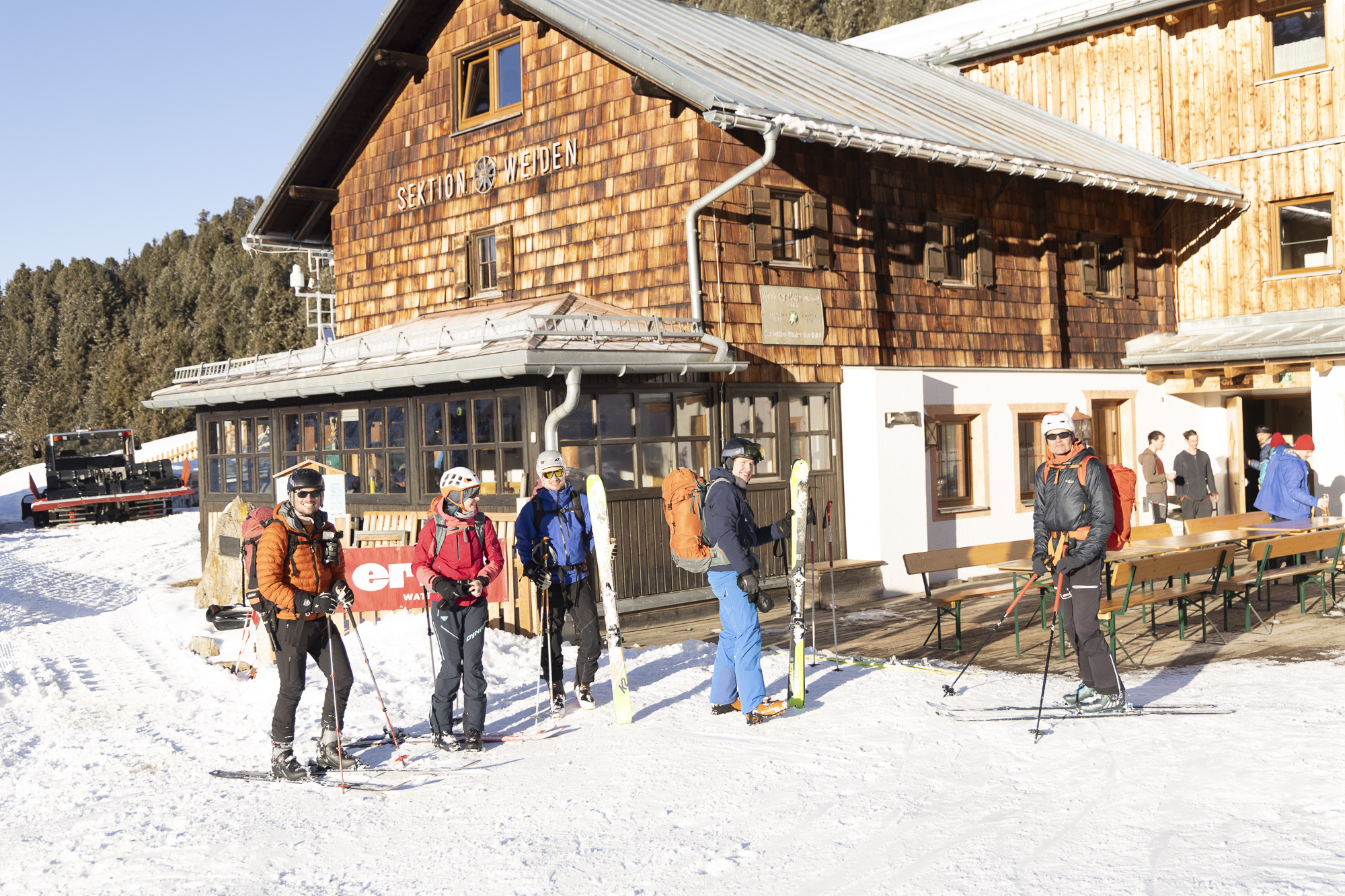 Nachdem wir am Vortag zur Lizumer Hütte aufgestiegen waren, mussten wir heute weiter zur Weidener Hütte. Auf dem Truppenübungsplatz der Wattener Lizum gilt eine Art „Wegegebot“ für Skitouren, demnach gäbe es nur einen legalen Übergang für uns: die Abfahrt zur Innermelanalm, den anschließenden Aufstieg zur Grafennsspitze mit Abfahrt übers Grafennsjoch (Skiführer Tuxer und Zillertaler Alpen, Touren C6 + B22). Bei der aktuellen angespannten Lawinensituation mit einem Altschneeproblem der Stufe 3 waren uns die großen Nord- und Osthänge hinab zur Graffennsalm allerdings nicht geheuer und wir schätzten das kleinräumiger gegliederte Gelände von der Torspitze zur Vallruggalm (Skiführer Tuxer und Zillertaler Alpen, Tour C11 - Hinweise) als geeigneter ein, um mit einer vertretbaren Route unser Ziel zu erreichen. Aufgrund dieser Überlegungen entschieden wir uns für diese nicht freigegebene Route (wobei es nach inoffiziellen Informationen in der Regel kein Problem ist, den Truppenübungsplatz auf dieser Route zu verlassen; kritischer gesehen wird das „nicht kontrollierbare“ Betreten des Übungsareals über diese der Route).