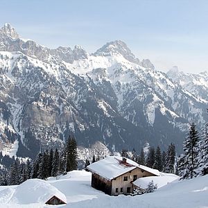 Viele der klassischen Skitourenhütten sind Eigentum der Alpenvereine, aber auch die ein oder andere privat betriebene Unterkunft bietet sich als Ausgangspunkt im Winter an. Gerade dort, wo vor den eigentlichen Skitouren unattraktives Zustiegsgelände zu überwinden ist, sind die Berghütten den Talquartieren vorzuziehen, insbesondere wenn man von der Unterkunft aus mehrere lohnende Ziele erreichen kann. Dazu ist es natürlich ein Zeit- und Konditionsfaktor, wenn man einen Gipfelanstieg bereits auf halber Höhe beginnt. Einen besonders hohen Stellenwert nehmen diese Hochgebirgsunterkünfte für Skidurchquerungen ein. Manche Etappen werden erst durch sie sinnvoll möglich, weil sich der Gepäckumfang gegenüber Winterraum- oder gar Biwakausrüstung massiv verringert. Ein Nachteil vieler beliebter Stützpunkte ist ihre starke Auslastung an Wochenenden oder an Ferien-/Feiertagen. Wer flexibel auf Wetter- und Lawinensituation reagieren möchte, muss entweder ohne Buchung aufs Geratewohl anreisen (riskiert damit aber einen schlecht gelaunten Hüttenwirt und muss sich oft mit einem Notlager abfinden) - oder er bucht längere Zeit im voraus und muss bei schlechten Bedingungen nach einer Absage Stornogebühren bezahlen. Wer die Möglichkeit hat, meidet Wochenenden und Ferien, dann ist in der Regel eine spontane Unternehmung kein Problem. Trotzdem sollte man am Vortag Bescheid geben, damit der Wirt die Verpflegung planen kann.